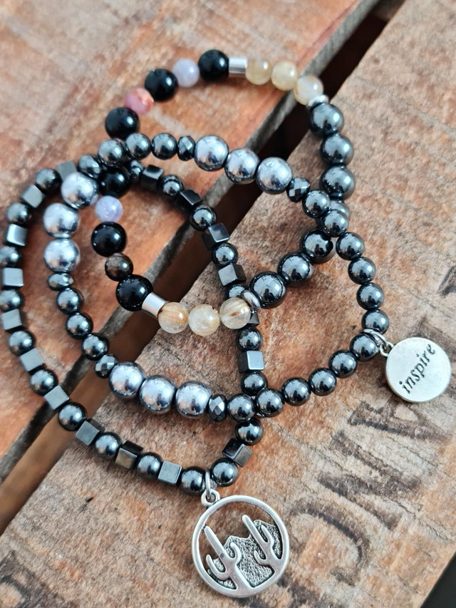 ✨ Hématite – Pierre d’ancrage et de force intérieure. Elle favorise la concentration et le lâcher-prise.
